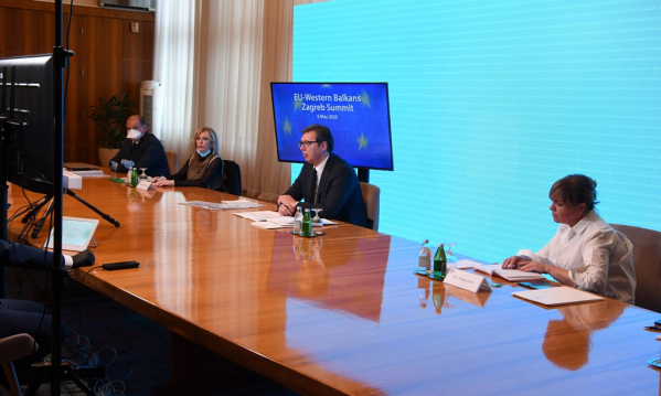 Председник Србије Александар Вучић пренео је да је на видео Самиту ЕУ - Западни Балкан указао да је потребно да се мање говори о перспективи, а више о процесу проширења, да Србија жели у ЕУ и да зато и желимо ту врсту конкретног одговора.